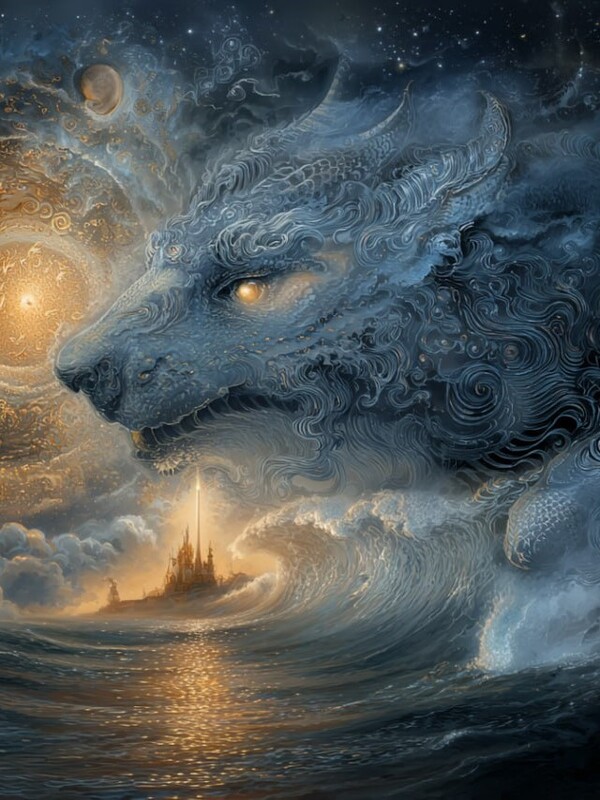 Однажды светлая сторона Монзука иссякла от борьбы и уснула. Тьма наполнила его, как яд, и морская вода почернела от гнева. Из недр поднялись чудовища — воплощённые страхи и тревоги, лишённые сознания. Три дня бушевало море — как мозг, охваченный бурей гнева. Люди, потеряв надежду, воззвали не к богам, а к свету внутри себя — к тому, что древние называли «дыханием души».