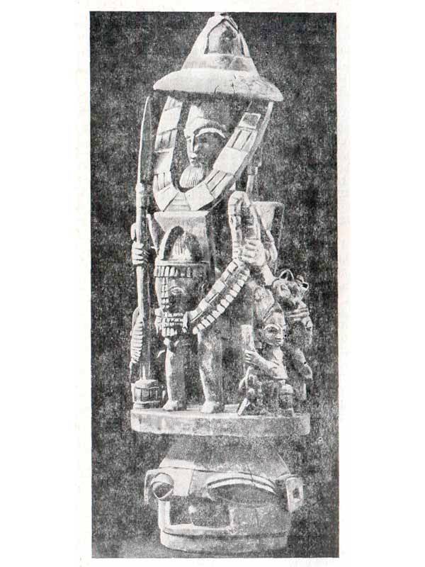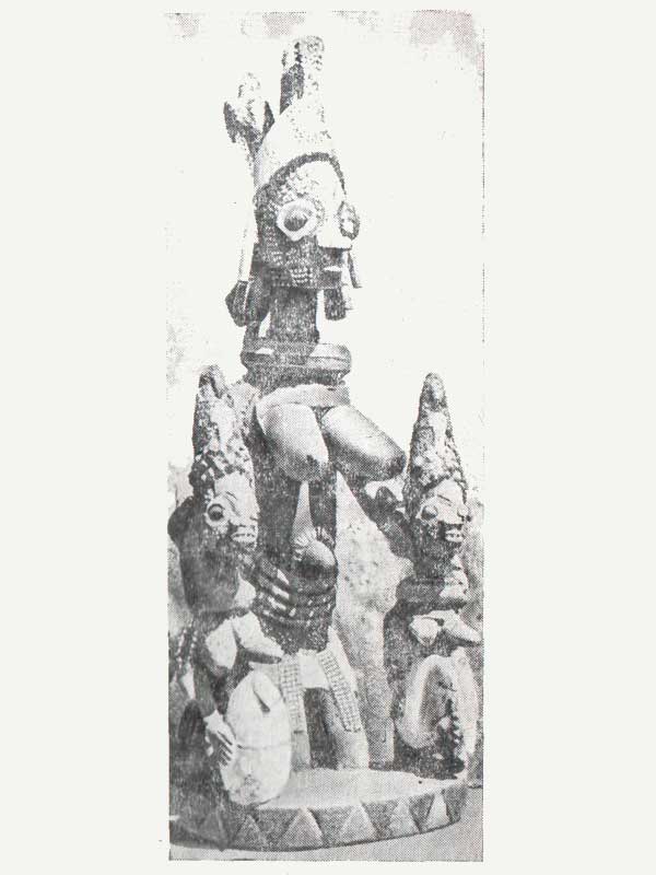 Маска тайного общества Геледе// Мастер Банделе. Маска Олоджу-фофоро. 1964 // Мастер Мамбгойе. Маска типа Эпа. Ок 1930 г. // Навершие маски типа Эпа