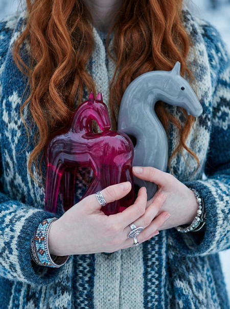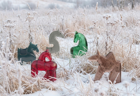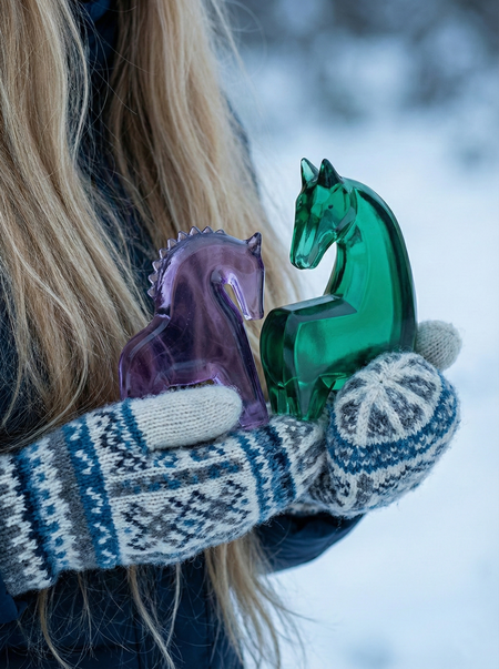 create promo photography for this horse figure, minimalistic north russia editorial style, sludio photography, no text, no logos, pastel winter cold colors, nordic cold aestetic,