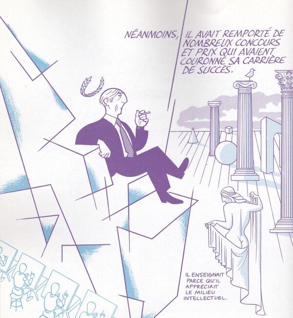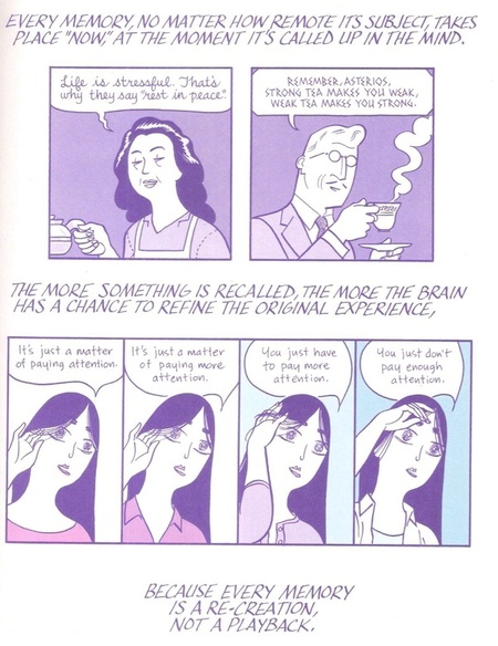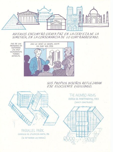 В Asterios Polyp пустота активно используется — страницы заполнены геометрическими блоками, разделяющими кадры на ритмичные секции, что создаёт эффект почти музыкальной паузы.
