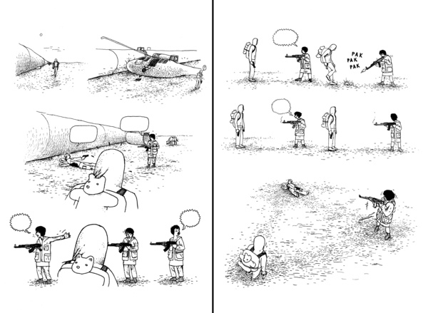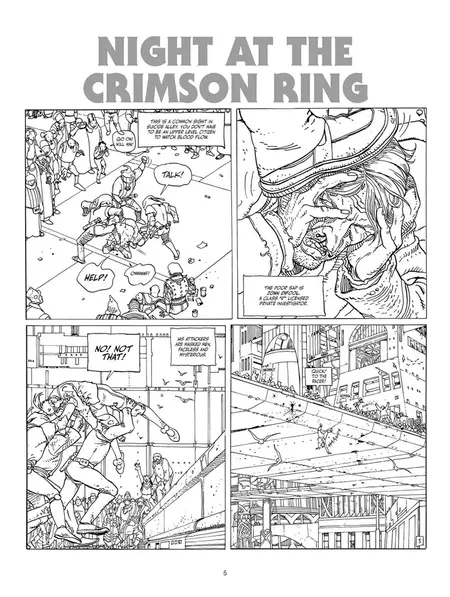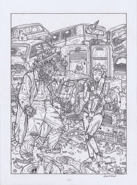 Комиксы этой подглавы демонстрируют полную противоположность минимализму. В Hard Boiled Джеффа Дарроу каждая страница выглядит как миниатюрный мир, усыпанный сотнями объектов: провода, мусор, детали машин, механика и случайные элементы образуют плотный визуальный шум.