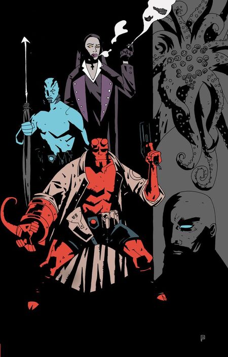 В Hellboy Майка Миньолы можно увидеть, как минималистичные тени сменяются насыщенными фонами в кульминационные моменты.