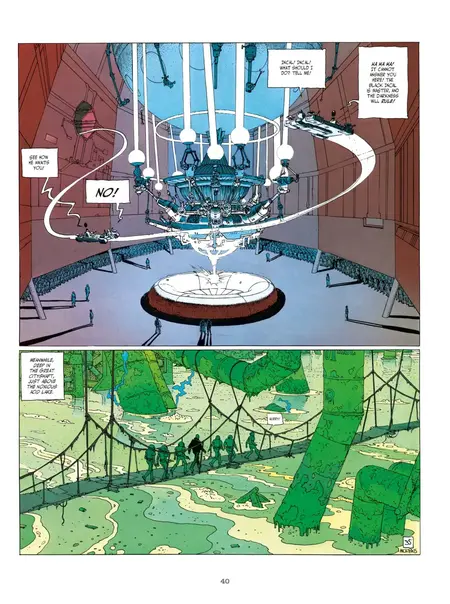 Панорамы Мёбиуса в The Incal выстраивают города как живые организмы, где каждая постройка прорисована с любовью к форме и текстуре.