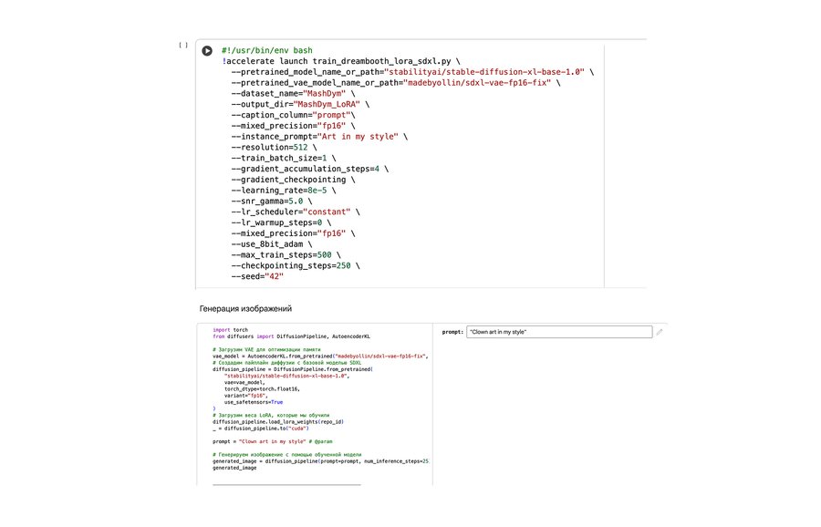Настройка Stable Diffusion XL (SDXL) с DreamBooth и LoRA на GPU T4.