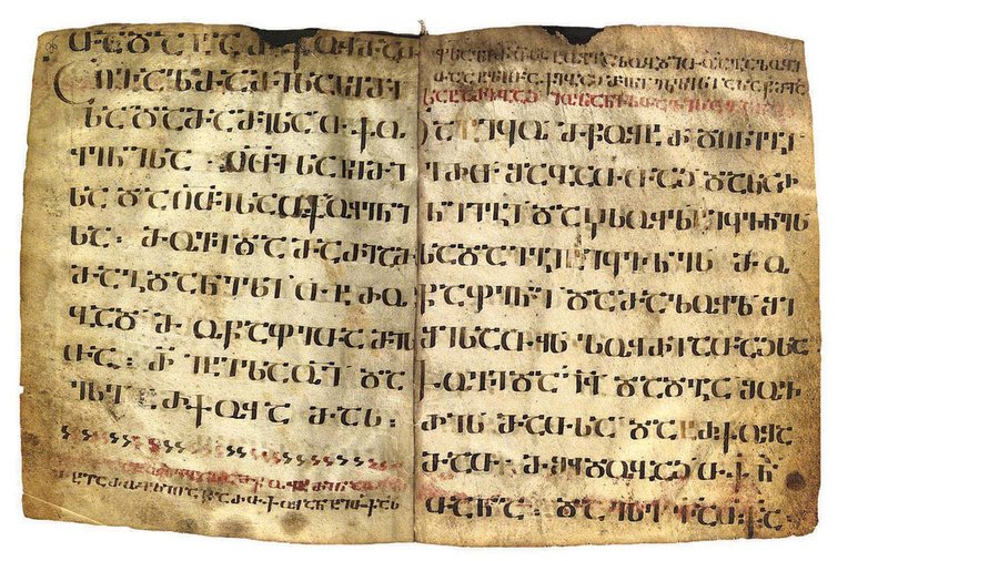 Ванский четвероглав, начало Евангелия от Марка, и Алавердский четвероглав, начало Евангелия от Матфея. (нускхури, асомтаврули)