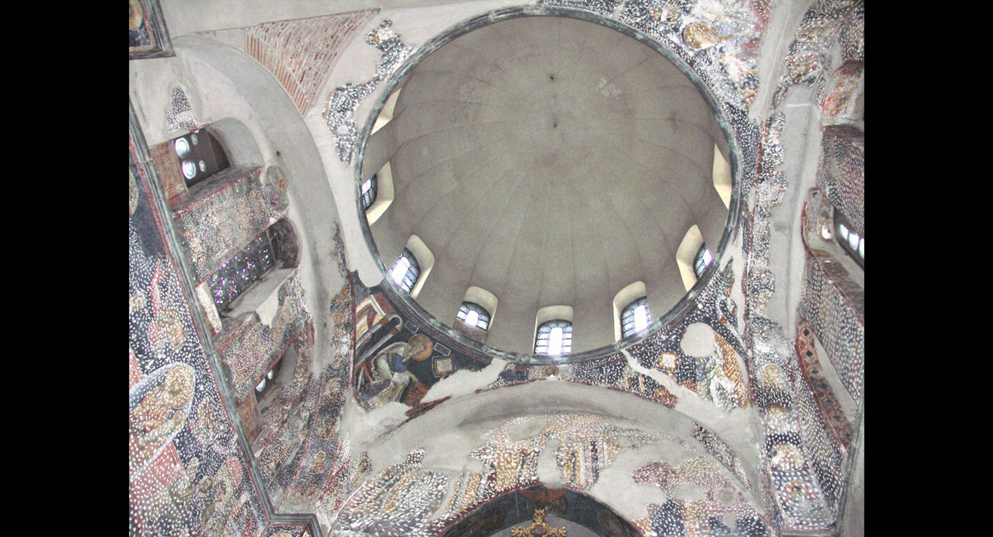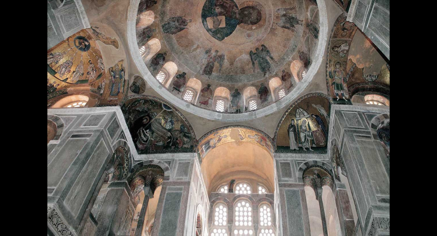 С такой сформировавшейся установкой я зашла в визуальное исследование. Византию не особенно подробно разбирают на неспециализированных курсах по истории искусств: она кажется довольно простой понятной, выражающей общую тенденцию — трансформацию формы (а вместе с тем того, какое направление она нам задает) храмовой архитектуры восточных христианизированных государств.