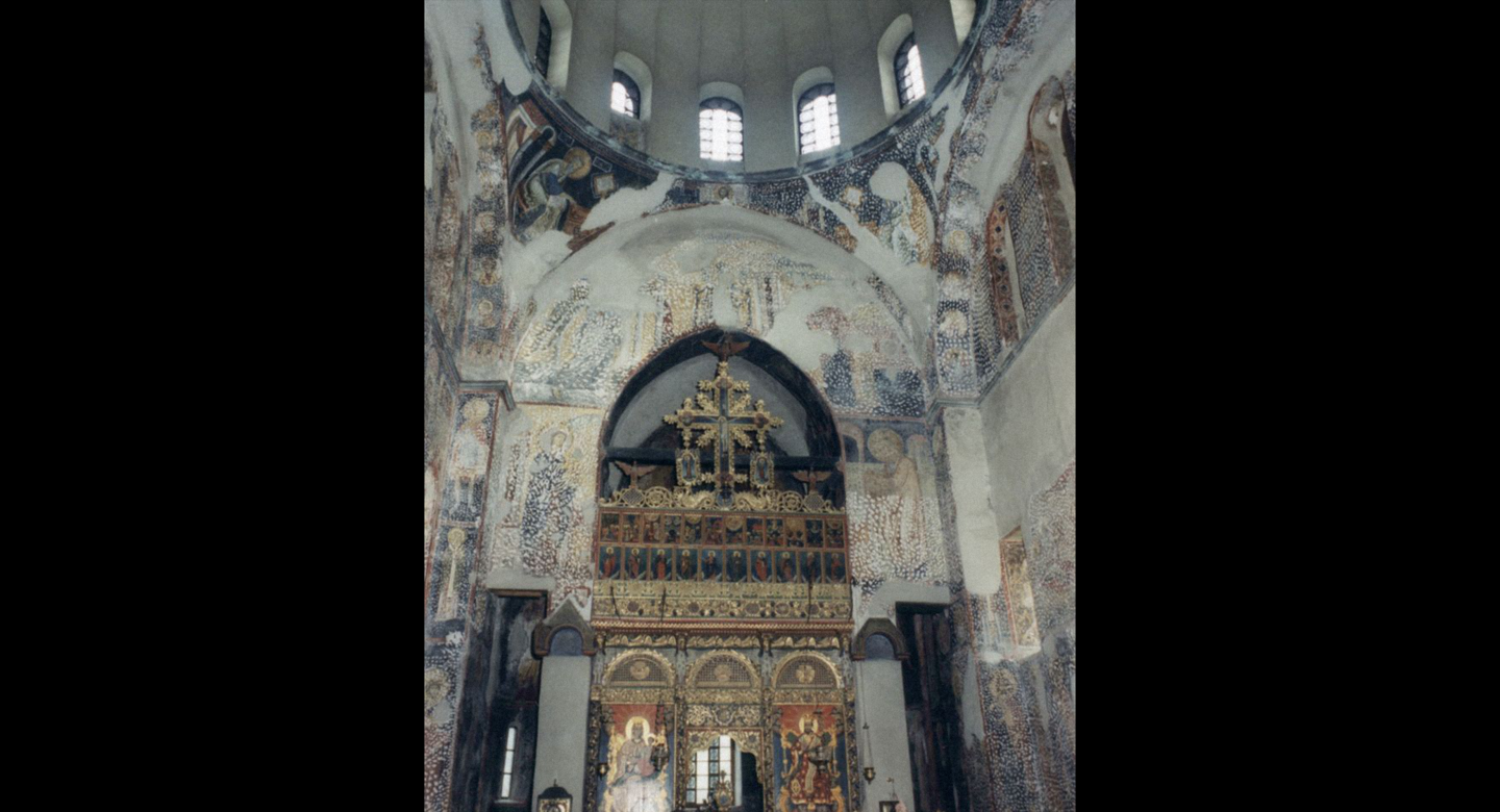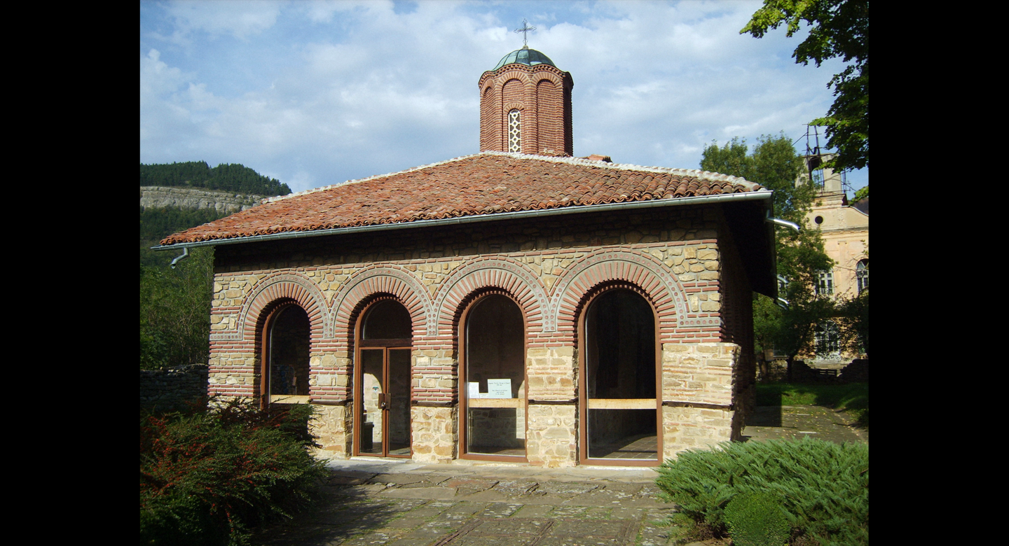 В Велико-Тырново (одна из точек сосредоточения типичных поздних болгарских образцов) есть противоположный пример. Небольшой крестово-купольный храм уже встречает нас четкой осью на восток — из-за глухоты над аркой наоса и так небольшой купольной части и вовсе не видно. Интенция начинает задаваться в свете из окна алтарной части. Общую направленность продлевает повешенный искусственный свет, вместе с окном моделирующий движение вперед).