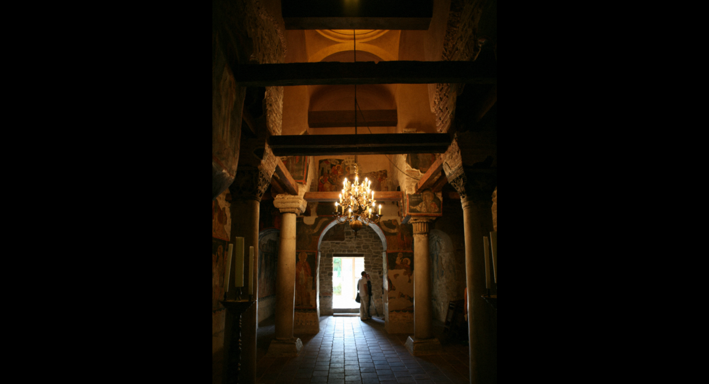 И, конечно, сколько методов, которыми могут пользоваться архитекторы для достижения интенционного эффекта от формы и пространства, мы успели отметить. Это может быть в разной степени прерываемая ритмика (что мы видели в основном в базиликальных пространствах), это работа с тенями (Грузия) и светом (он оказался особенно актуальным для Греции), это масса и вес объема и материала (весь Кавказ, пожалуй), это разномасштабность высоты (Сербия, Древняя Русь), направленность простых форм, угадываемых в объемах (снова Кавказ с их угловатостью завершений), это горизонтальная рассосредоточенность или, наоборот, собранность (видели как и то и другое работает на примере Древней Руси), это работа с чистой площадью и объемом (видели в ранней Сербии).