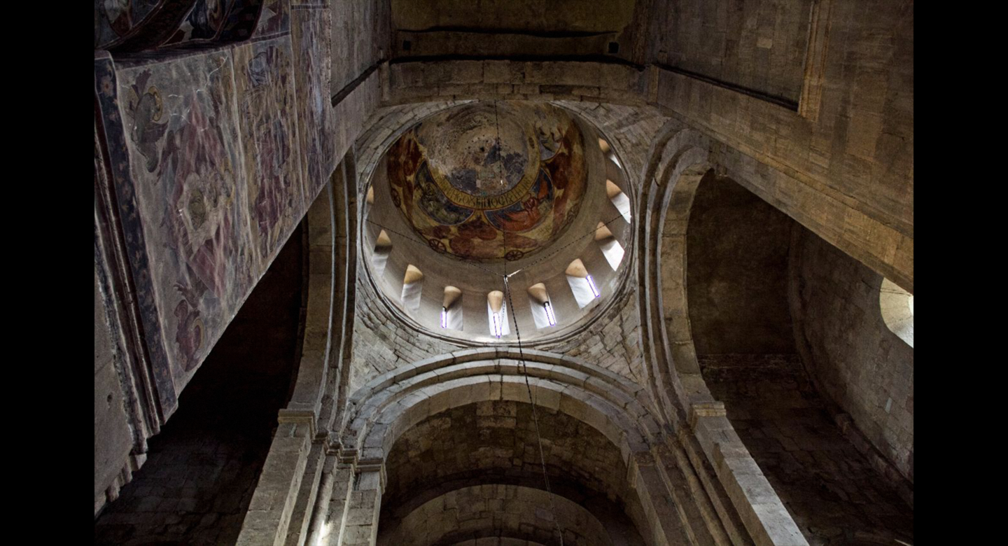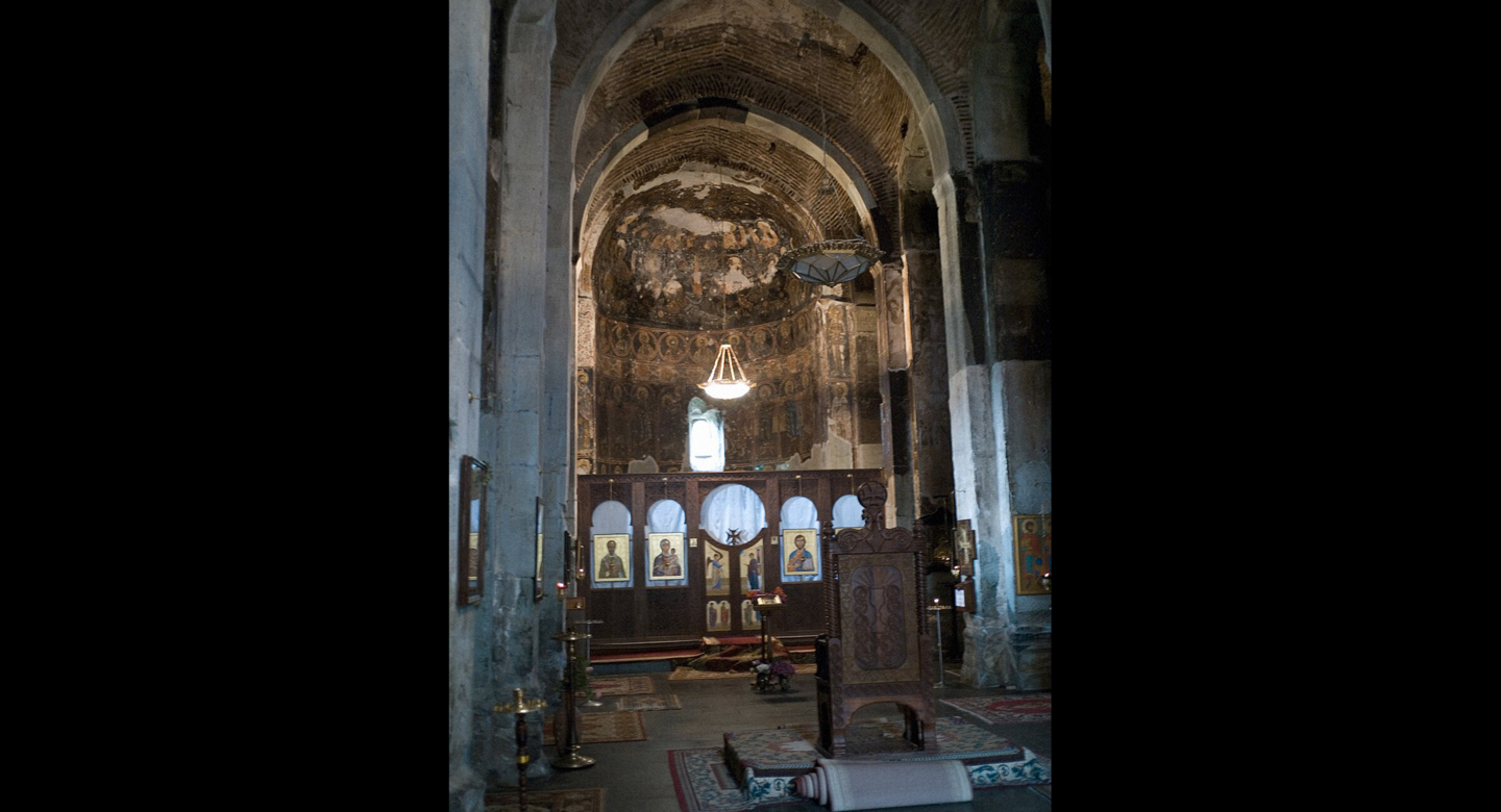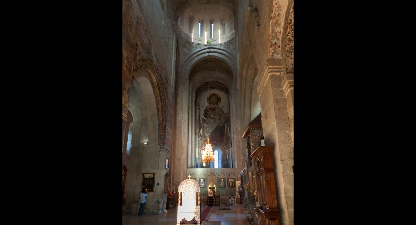В более поздних вариантах можно заметить то же, что мы уже замечали в Сербии — уплотнение пространства под куполом, уменьшение диаметра и вытягивание вверх, взятие главной точки напряжение не за счет массы или площади, но за счет стремительной перемены высот. И также, как и в Сербии, направление становится еще более осеобразным. Только кажется, что с тяжелыми грузинскими массами камня это устремление проходит через несколько дополнительных препядствий, будто «вопреки».