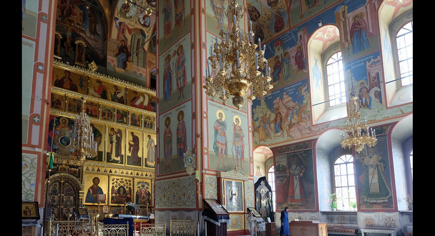 Интересно также, что снаружи за счет своего объема внимание от главного купола перетягивает сторонний, слева (помним, что луковок не было, и основной золотом не помечали). Снаружи в этом плане кажется, что центричность немного нарушина, хотя главный купол и явно выше.