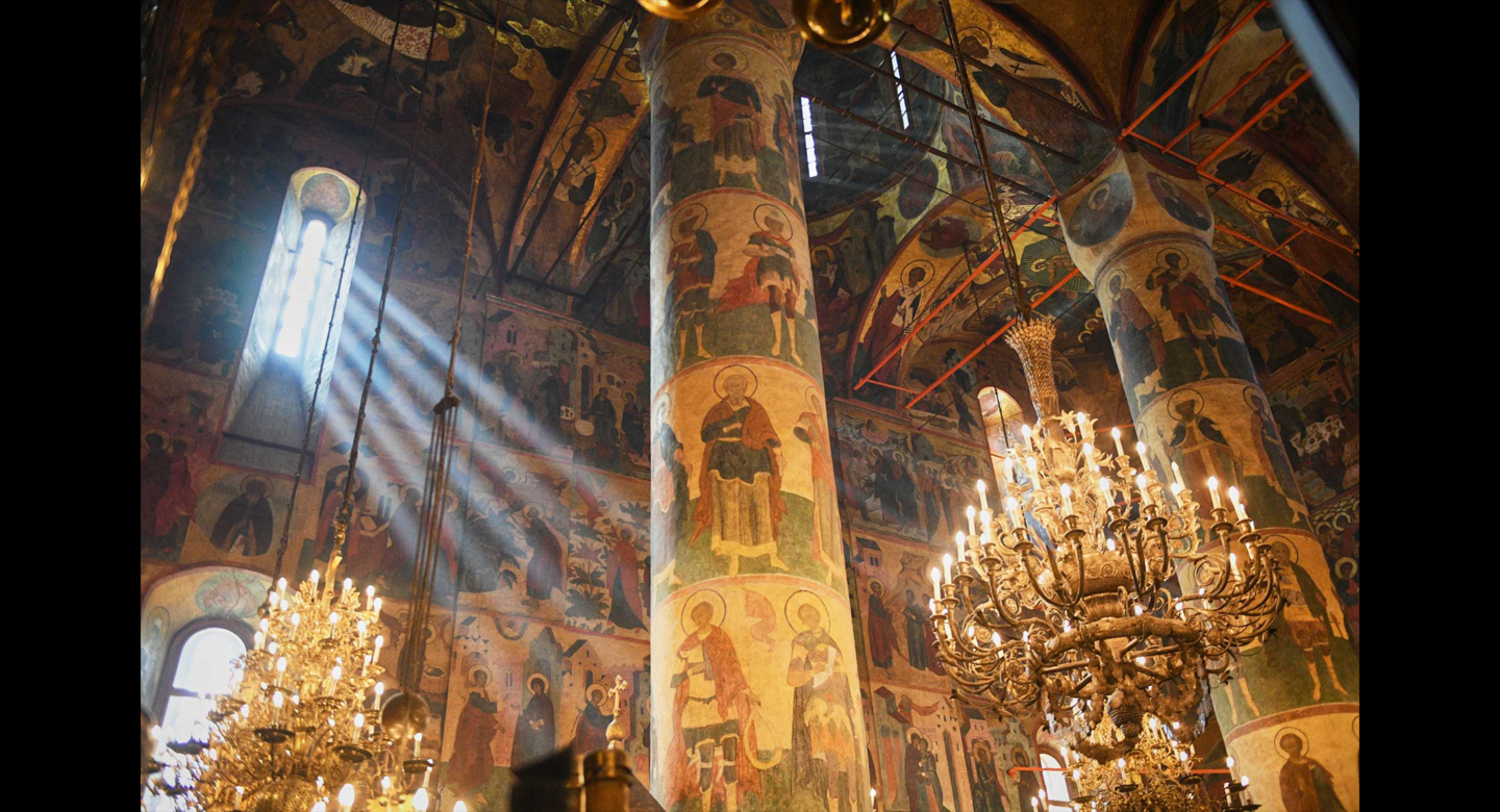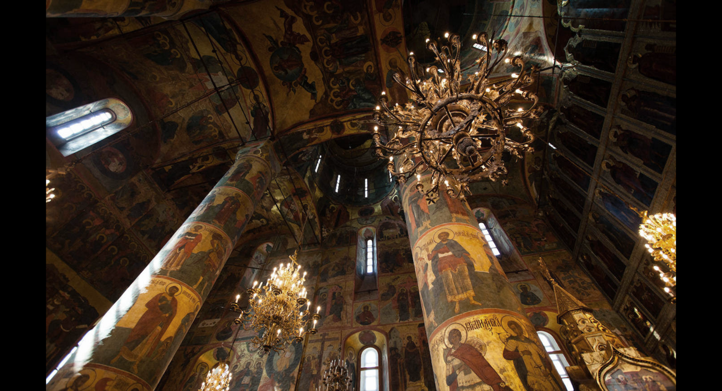 Успенские соборы тоже интересны в том, как они стараются моделировать наши действия. Если быть точными, то практически никак. За счет равной высоты всей основной массы и достаточной автономии главного купола (и, вероятно, малого количество света в нем — особенно в московском) создается впечатление, будто мы гуляем по пространству вообще без заданной иерархии, как по лесу. Пространство впускает нас и открывает сразу все свои части, особенно не пытаясь куда-либо направить вообще. Внутренние движения формы направлены во все стороны и одновременно никуда.