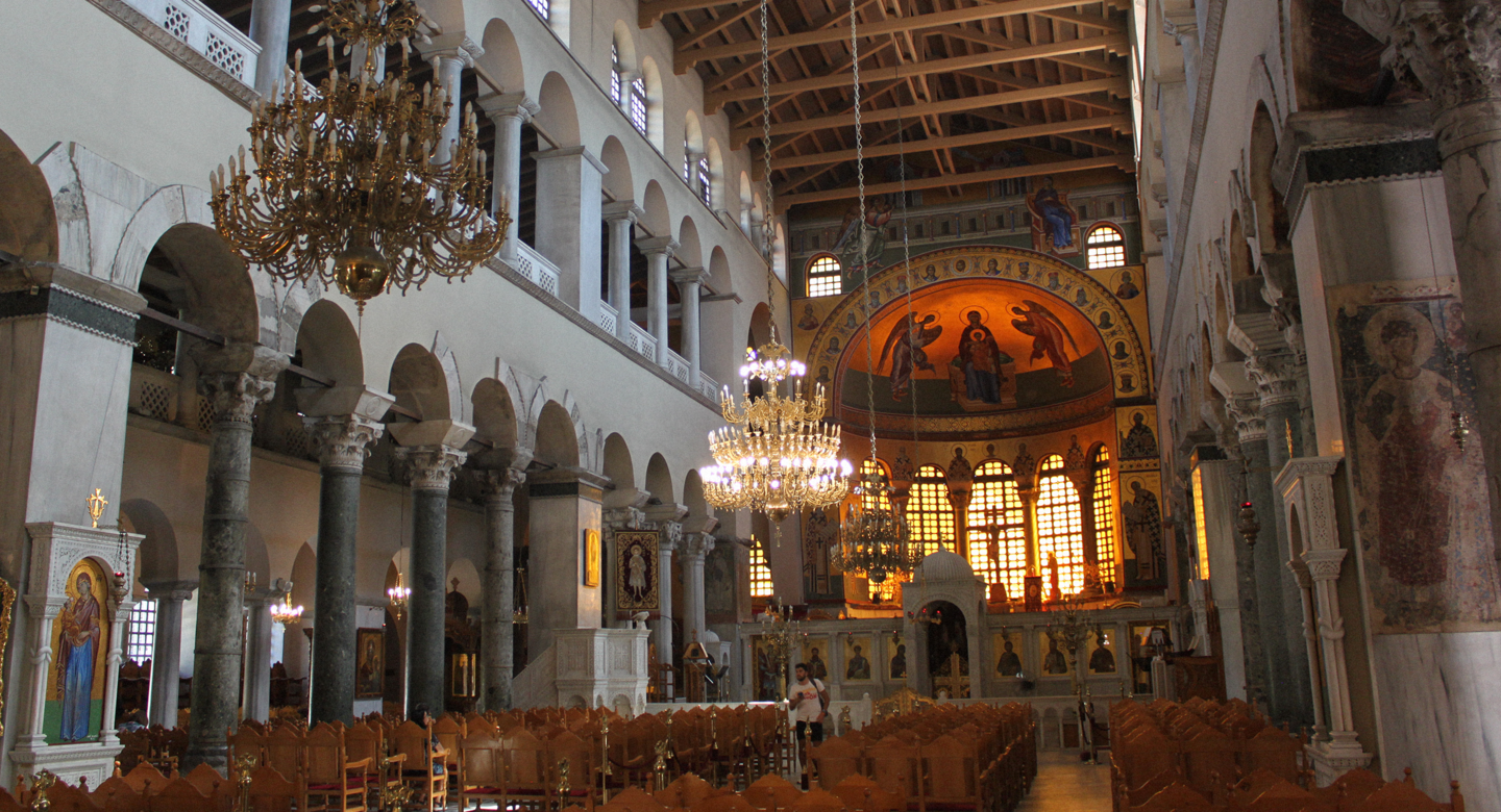 Тот тип греческих базилик, о котором почти всегда незаслуженно ни слова не говорят — купольная базилика. «Базиликальность» сохранена, но сверху, в восточной части центрального нэфа стоит купол, освящающий алтарь