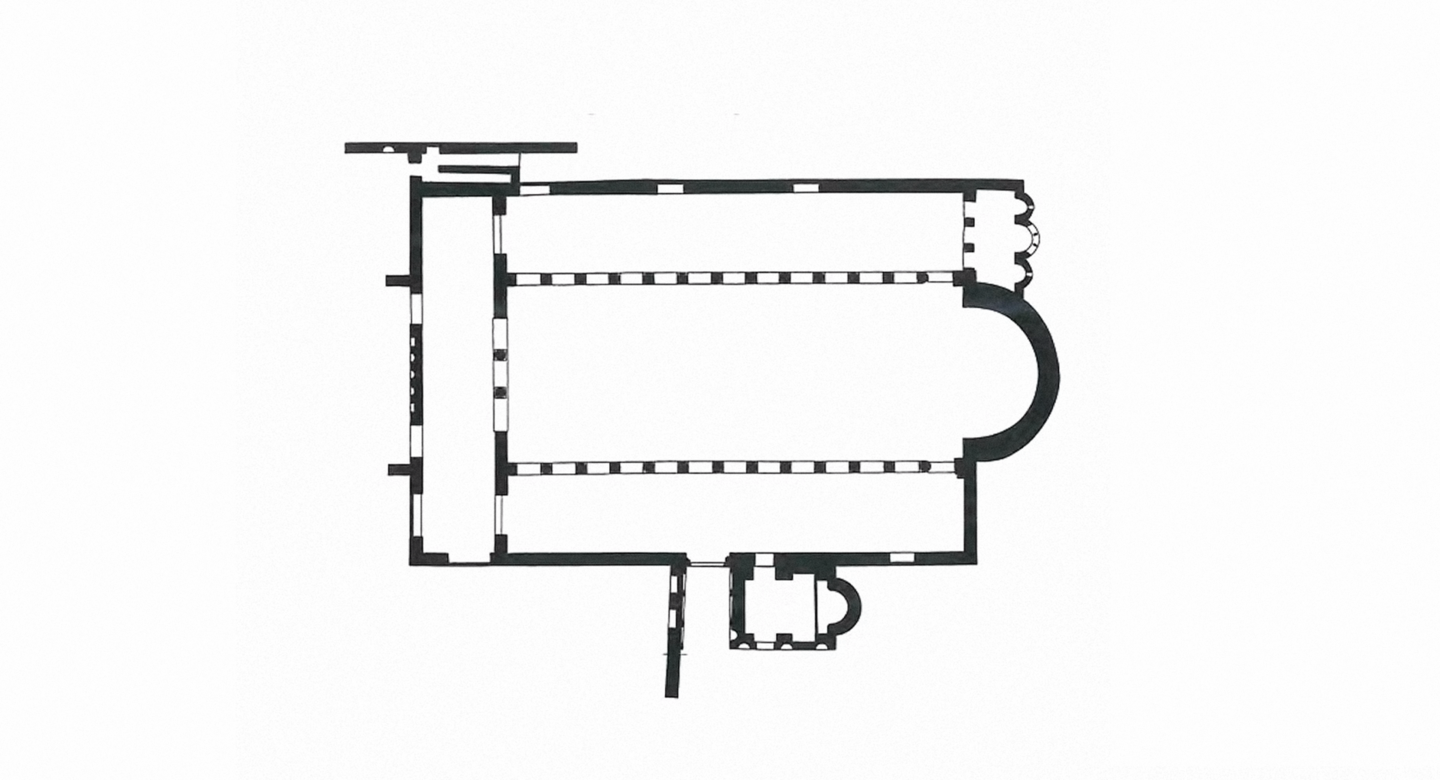 Для базилик Армении можно предположить опору на античный ориентир — храм в Гарни. Помимо общей базиликальной структуры здания внутри можно отметить то, как здание ведет себя снаружи — как и античные образцы, оно стоит на ступенчатой возвышенности (подобие стереобата), уже проводя условные линии по бокам, цепляя за них взгляд. Также стоит отметить и то, что абрис у храма прямоугольный, и формально апсида никак не выделена — также делают в Сирии и кажется важным отметить не только те места, в которых форма пытается манипулировать нами, но и те, в которых не пытается (мы снаружи не воспринимаем алтарную часть как зеркальную, особенную — она утоплена в здании)
