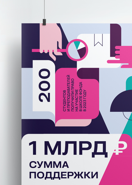 For a series of posters on the achievements of the Potanine Foundation over the past year, an additional color palette has been developed that harmoniously complements the existing brand colours. The new palette is designed to make the visual style more intelligent and culturally representative of the Fund ' s values. Posters have been carried out in the infographic genre, thus providing a clear and accessible picture of the Fund ' s achievements to both long-standing partners and potential target audiences.
