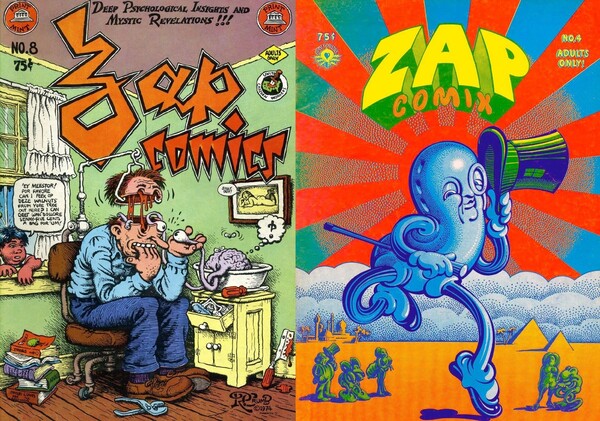 Обложки для «Zap comix» Роберта Крамба и «It Aint Me Babe» Трины Роббинс