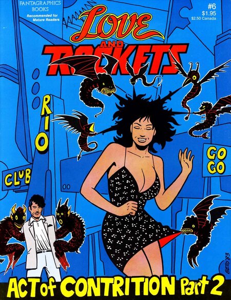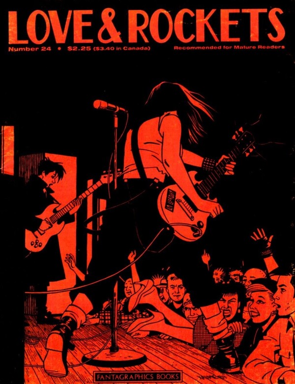 Обложка и фрагмент из комикса «Love and Rockets» братьев Эрнандес (1981)