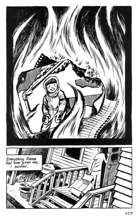Томпсон пытается создать, а не разрушить. Через некоторые попытки уничтожения значимых для него вещей, хранящие в себе нежелательные воспоминания, Крейг все-таки приходит к творчеству. Комикс, который мы читаем, — это прямое доказательство того, что его мучительный поиск привел к созданию чего-то прекрасного.