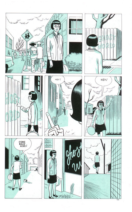 «Ghost World» — это не история о том, как трудно стать взрослым. Это история о том, как трудно захотеть им стать. Финал комикса, в котором Эннид садится в автобус может быть хорошей метафорой, как жест ухода, жест движения, но без ясного направления.