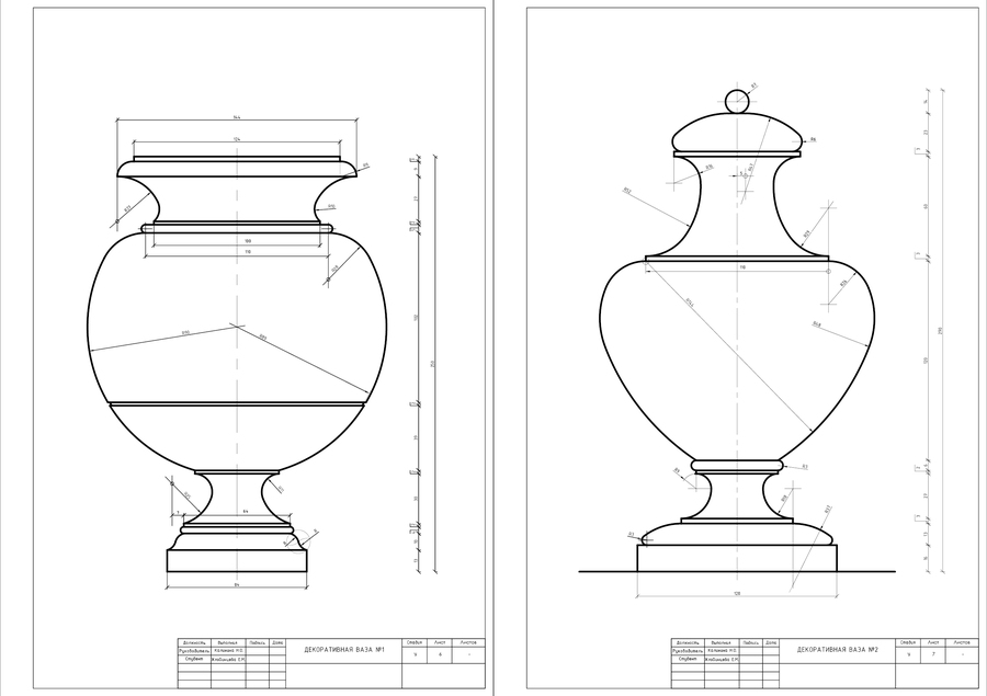 Учебные чертежи № 5,6 и 7. Декоративные вазы: базовые и усложнённая