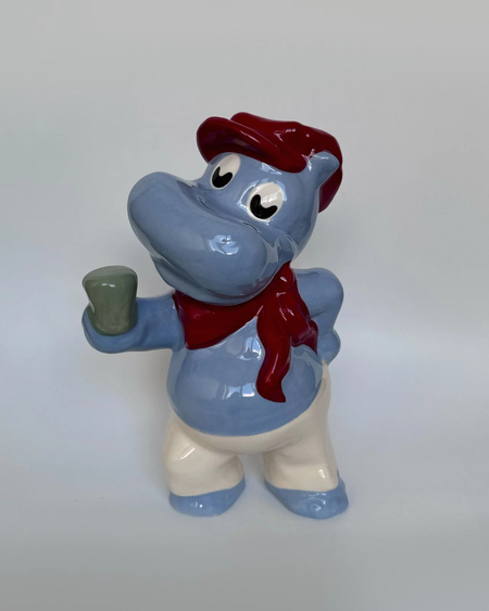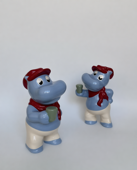 Prompt: Create a vibrant, playful, and child-friendly product packaging design for a complete collectible figurine of the «Kinder Happy Hippo» character. The packaging should be a sturdy, glossy cardboard box with a clear plastic window on the front to showcase the figurine inside. The design must prominently feature the blue hippo mascot wearing his iconic white t-shirt with «Kinder» logo, smiling and waving. Include the bold, stylized text «Happy Hippo» in large, rounded, gradient blue letters with a white outline and subtle shadow, positioned below the «Kinder» brand logo (black «Kin», red «der»). Add small decorative elements like candy wrappers, chocolate pieces, or stars around the hippo to enhance the fun, sweet theme. The background should be light sky-blue with soft cloud patterns. Include a «Collect Them All!» tagline and an age recommendation (e.g., «Ages 4+») at the bottom. Style: cartoon illustration, high detail, bright colors, commercial product photography lighting, 3D realistic rendering.