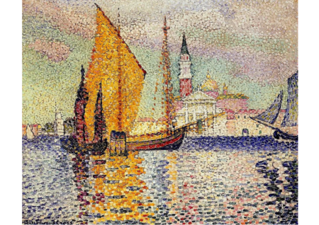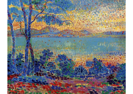Поль Синьяк — известный французский художник (1863 — 1935). Его работы заметно отличаются яркостью оттенков. Это связано с тем, что он не ставил перед собой задачу передать реальные оттенки. (1) Он хотел передать эмоцию через цвет, благодаря чему у него даже появилась своя система: восходящие линии были теплых оттенков и передавали радость, а нисходящие, наоборот, были холодными и свидетельствовали о печали. Однако автор смело использовал в работе и холодные, и теплые оттенки, из-за чего небо на его работах выглядит сказочным.