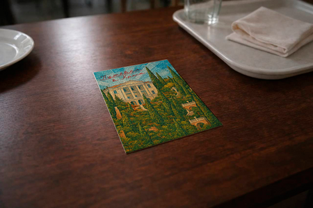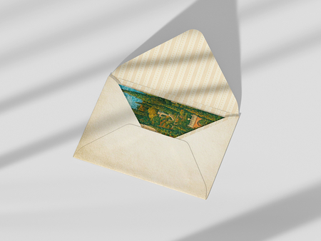 Сам конверт выполнен из советских обоев, а их паттерн помещен внутрь