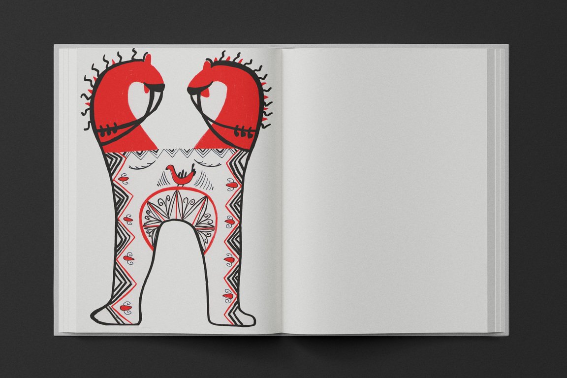 Групповой проект исследует городскую среду как живой организм. Образ двуглавого человека символизирует двойственность города, переосмысливая герб России.