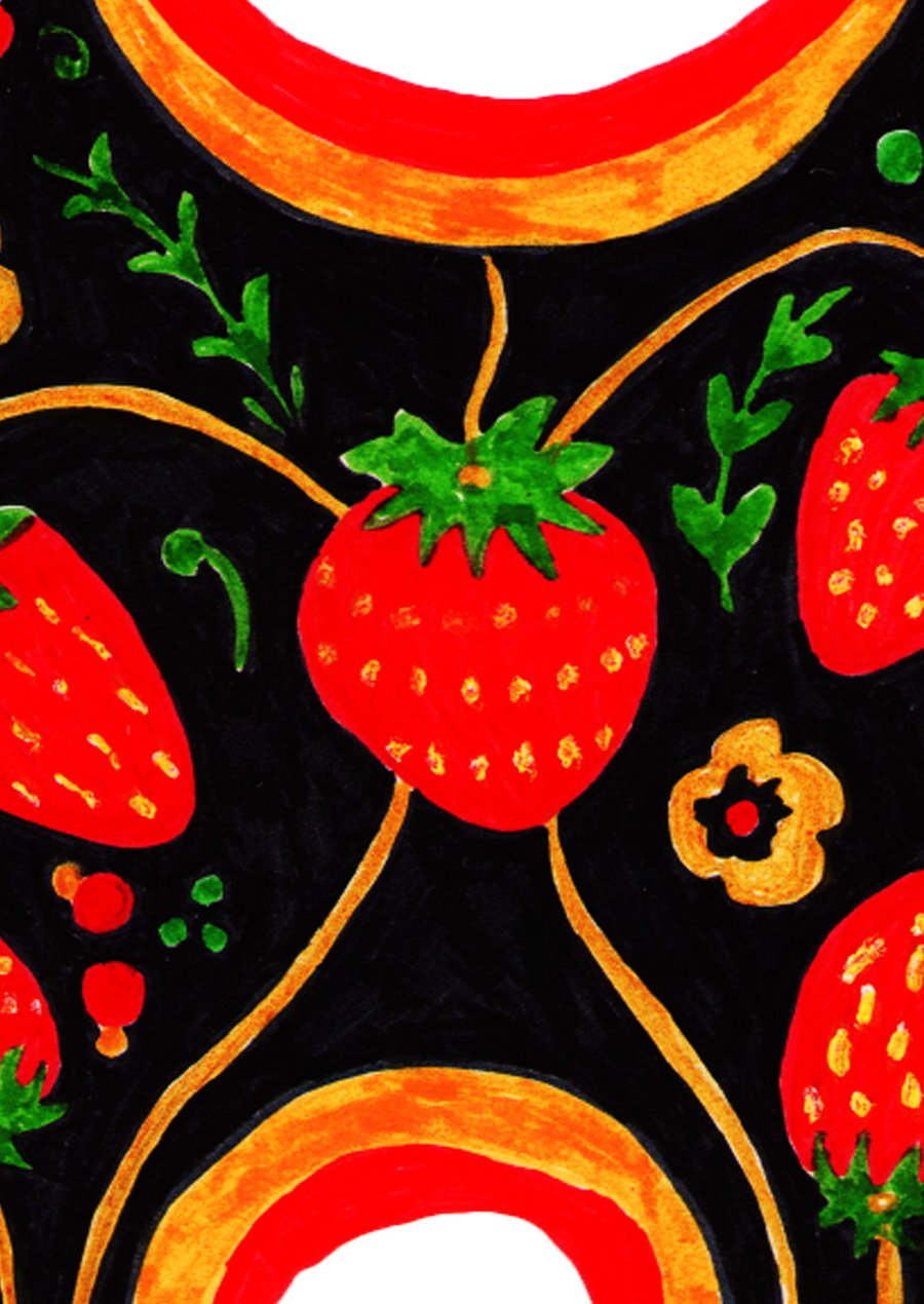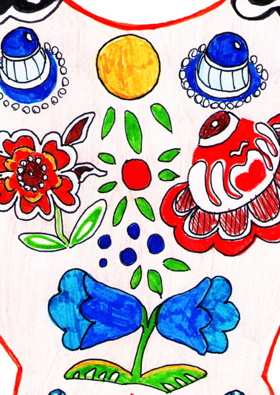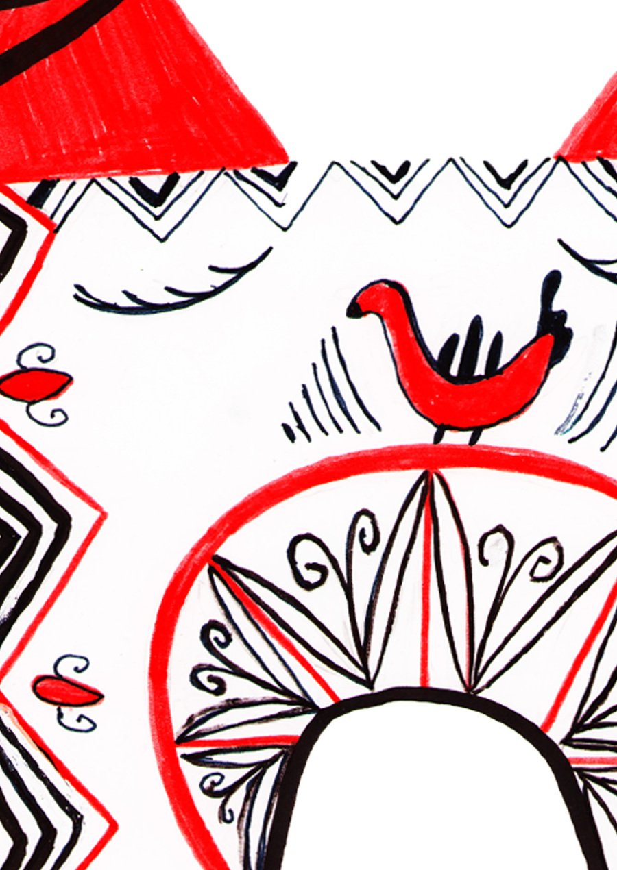 Каждая работа — самостоятельный визуальный модуль, собранный по принципам выбранного стиля: орнамент, палитра, пластика форм, характерные мотивы. Содержание строится на элементах, связанных с бытом, природой и символикой этих росписей. Повторяемость и декоративность орнамента подчеркивают идею цикличности, традиции и коллективного опыта.