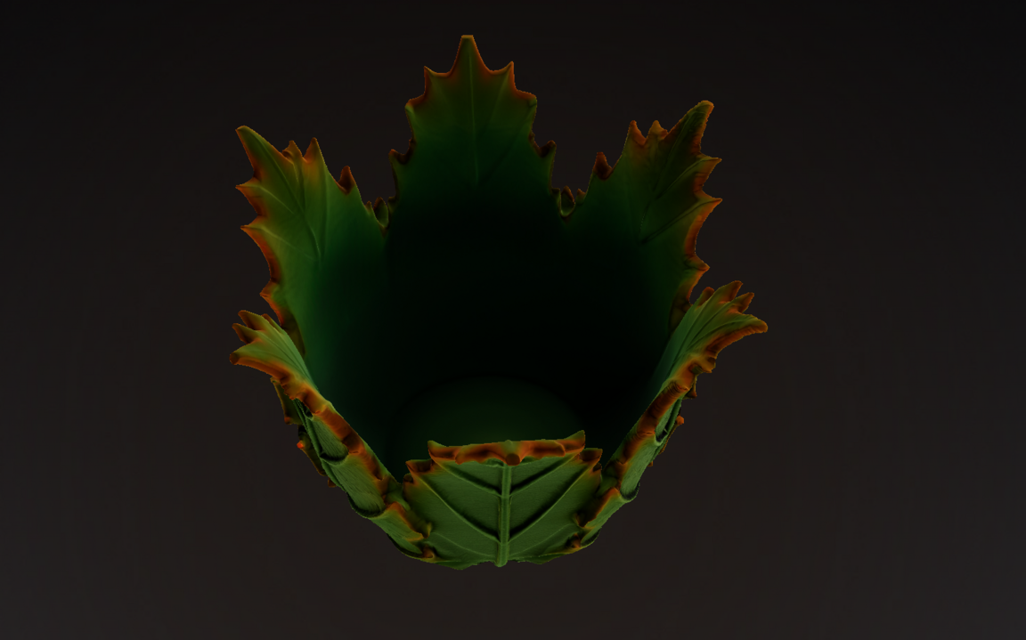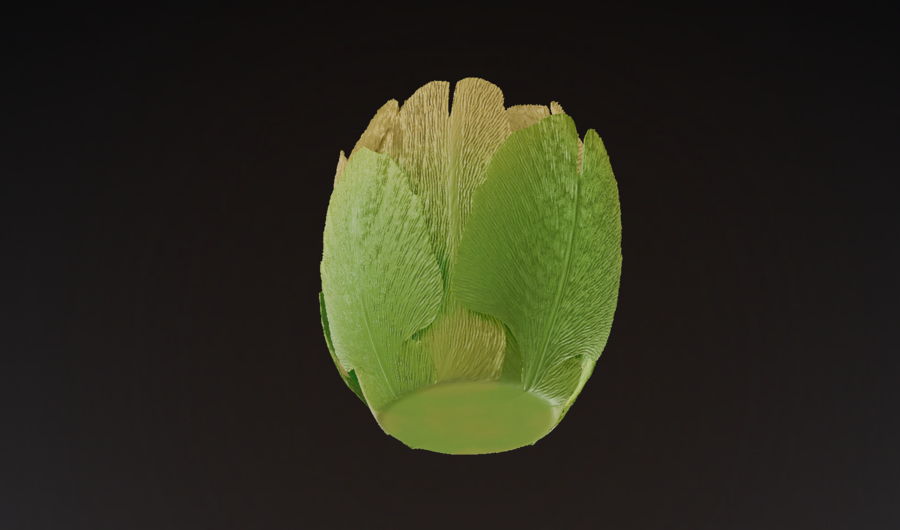 4. Поддержки (Supports) Размещение: Только в случае необходимости — минимально, преимущественно на внутренних поверхностях и в местах сильного нависания. Лицевая сторона: Никаких поддержек на внешних поверхностях листьев — только если это абсолютно необходимо, то точки контакта должны быть минимальными и плоскими. Удаление: Поддержки удаляются аккуратно, без повреждения рельефа листа. Оптимизация модели: Предпочтительна ориентация «листами вверх», чтобы минимизировать количество поддержек.