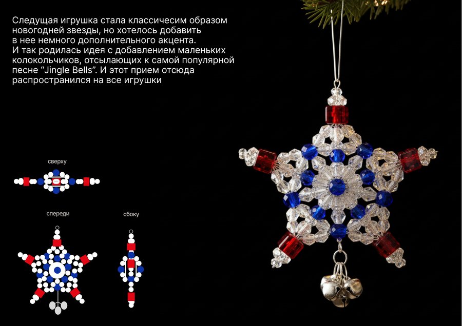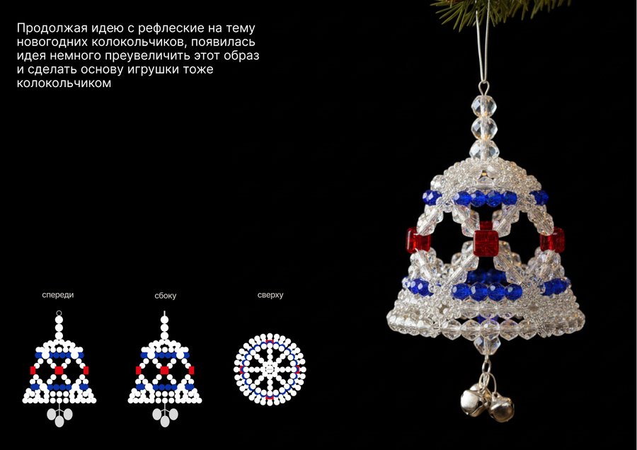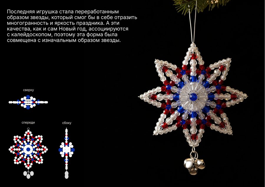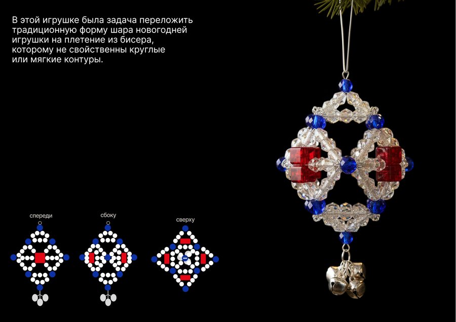 Идея проекта заключалась в переосмыслении классических новогодних форм через призму плетения бисером, что помогло бы создать уникальные, привлекательные игрушки.