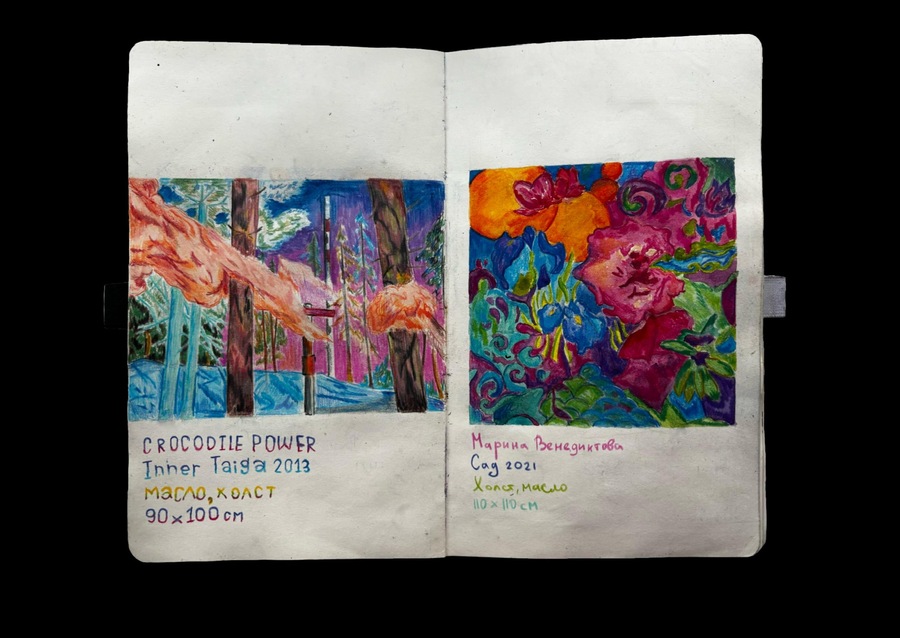 Визуальное исследование, заданное мне на лето, было очень увлекательным. Изучать работы художников, скульпторов, архитекторов, находить к ним пары, рисовать их в скетчбуке. — все это было очень интересно! Найденные мною пары соотносятся лупу с другом по цвету / композиции / идее