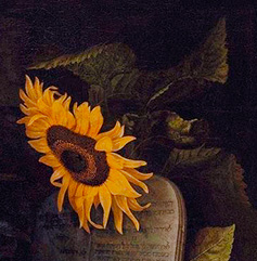 Символическое значение красной гвоздики предает сострадание и материнскую любовь. Есть поверье, что слезы Девы Марии превратились в алые гвоздики. Большая голова подсолнуха, склоненная к земле, символизирует преданность и верность вассала к королю, а также стремление к свету и истине. Цветок, обогретый лучами солнца, несет в себе жизненную силу и радость.