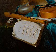 В натюрмортах Средневековья флейта встречалась довольно редко, в отличие от более поздних периодов, где она могла символизировать бренность или талант человека. В Средневековье основными символами служили другие музыкальные инструменты, а флейты (или свирели), хотя и были распространены, не использовались в живописи так широко как символические объекты. Тем не менее, учитывая особенности искусства того времени, изображение флейты в натюрморте могло нести те же значения, что и в более поздние эпохи, например, символизировать бренность или быстротечность времени.