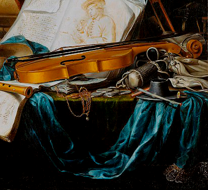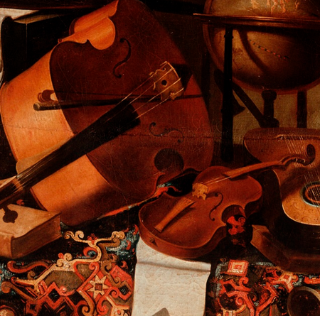 Скрипка символизировала музыкальное искусство, мастерство или божественное покровительство. В жанровых сценах 17 века скрипка часто изображалась как часть музыкального ансамбля или в контексте повседневной жизни, показывая досуг и развлечения.