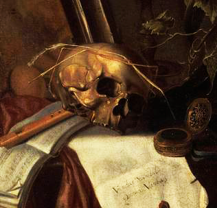 Основным элементом композиции мог стать череп. На натюрмортах он символизирует неизбежность смерти, напоминая смотрящему о концепции «memento mori» (помни о смерти). Он подчеркивает тщетность земных благ, славы и суеты.