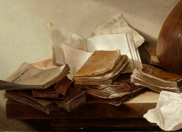 Стопки книг также часто встречаются на натюрмортах средневековья и символизируют знание, мудрость и образование. В зависимости от контекста этот предмет может означать духовное увлечение и вселенную.