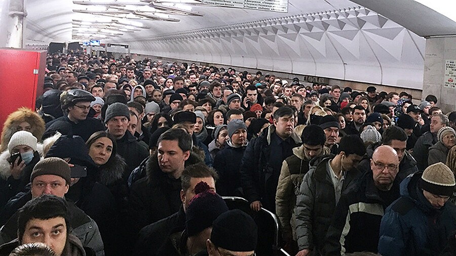 Толпа в Московском метрополитене, дата неизвестна