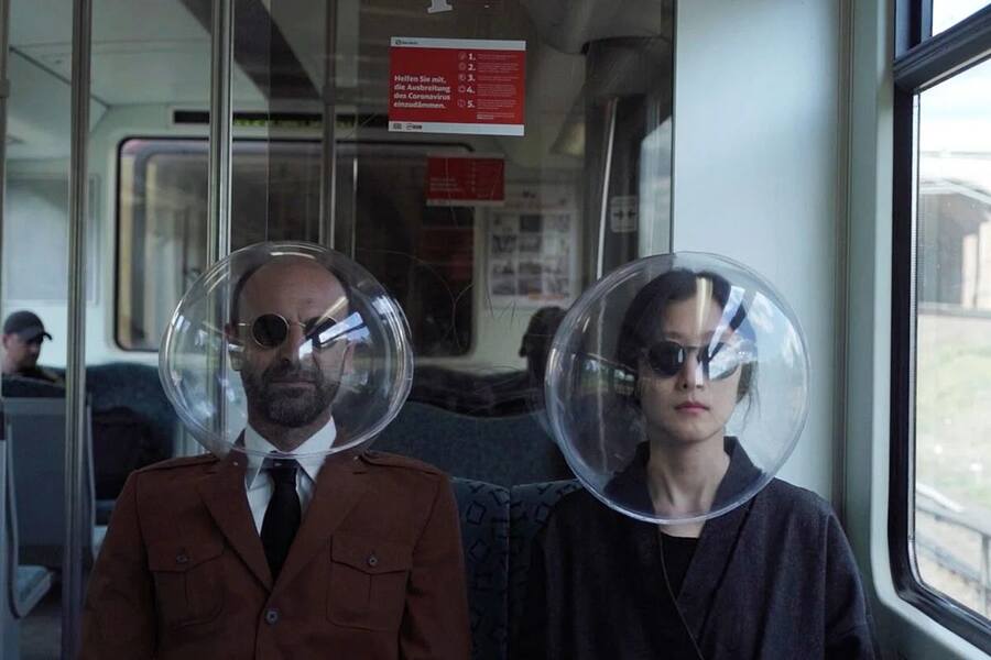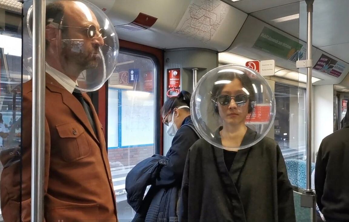 Berlin-based collective Plastique Fantastique created a plastic head protection sphere