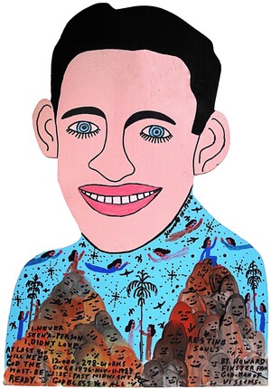 Говард Финстер, другой выдающийся художник-аутсайдер, использует автопортрет как средство духовного самовыражения и визуального акта самосозидания. Его образы насыщены религиозными и символическими элементами, а сам он воспринимает своё творчество как миссию, которой нельзя не подчиниться. Автопортрет для Финстера — это способ творить себя заново через художественный жест, который задаёт новую реальность.