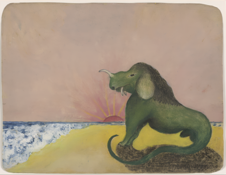 Минни Эванс. Неизвестно (лица с ангелами и животными). Дата неизвестна. / «Зелёное животное». 1963 г.