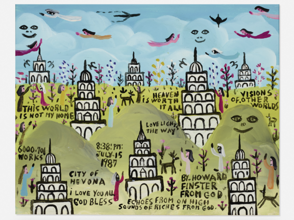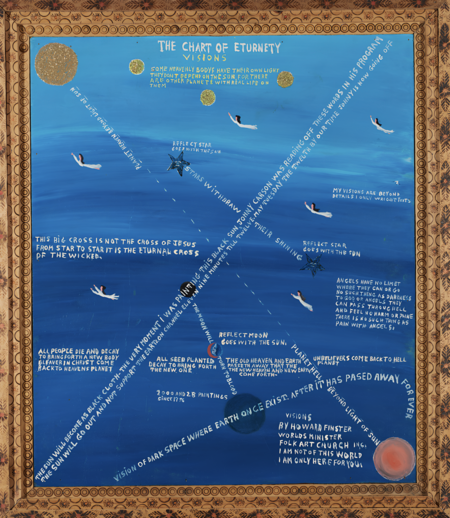 Говард Финстер использовал визуальный язык как проповедь: тысячи текстов, портретов и символов на панелях становились не эстетическим экспериментом, а актом медиации между реальностью и высшими силами, где искусство выполняет роль связующего звена.