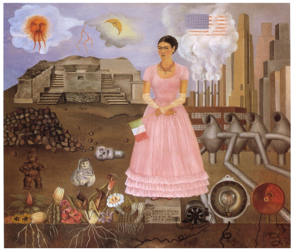 Фрида Кало. «Автопортрет на границе между Мексикой и Соединенными Штатами». 1932 г. https://share.google/images/fc6PJ2B7OSyCOIUtL (дата обращения: 19.11.2025)