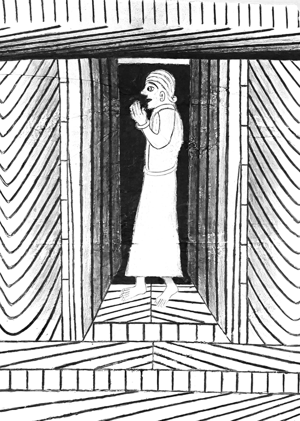И когда автопортрет уже перестаёт быть просто попыткой увидеть себя и превращается в способ собрать рассыпающееся «я», мы оказываемся на границе ещё одного важного слоя аутсайдерского опыта — того, где искусство перестаёт принадлежать только человеку. Для многих художников-аутсайдеров творчество оказывается не только инструментом саморегуляции, но и каналом связи с тем, что они сами называют «голосами», «силой», «богом». Их жест, линия, повторяющийся символ — всё это становится не психологическим актом, а духовным ритуалом, через который человек пытается удержать себя перед лицом переживаемого хаоса. Если в терапии важен процесс, то здесь важен контакт — с чем-то, что выходит за пределы индивидуального сознания.