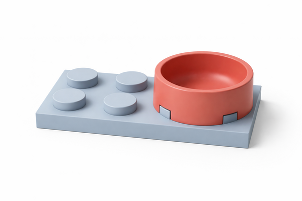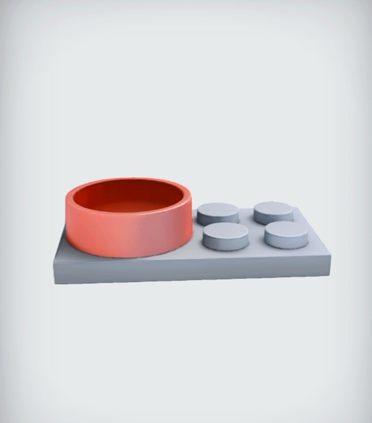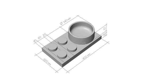 Миски выполнены в виде съёмных округлых элементов, устанавливаемых на устойчивую подложку. Такая конструкция фиксирует положение миски во время использования и повышает комфорт животного при приёме пищи. Простая геометрия и мягкие скругления облегчают уход и мойку, а вариативность конфигураций позволяет адаптировать систему под разное количество животных.