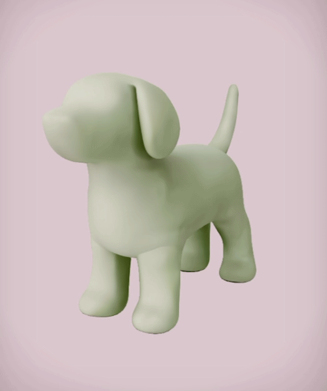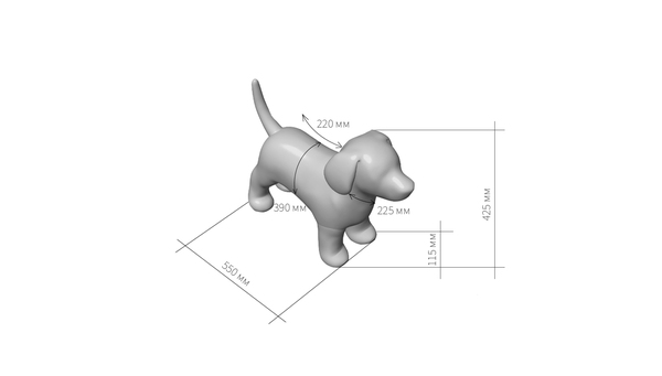 Манекены предназначены для демонстрации одежды и аксессуаров для собак в торговой зоне зоокомплекса. Обобщённая форма с мягкими скруглениями позволяет акцентировать внимание на изделиях, не отвлекая от них излишней детализацией. В проекте представлена модель малого размера, при этом конструкция предполагает создание серии манекенов в нескольких масштабах, адаптированных под разные породы и размеры собак.