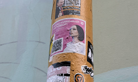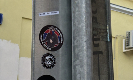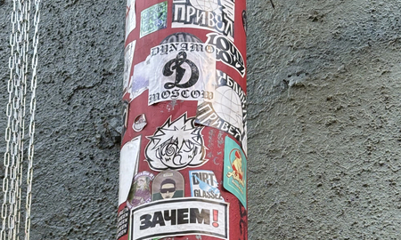 Пример — фотографии выше, сделанные на углу Хохловского и Малого Ивановского переулков, где достаточно большая проходимость прохожих и относительно высокая активность по уничтожению стикеров. Состав стикеров поменялся практически полностью, но темы остались прежними.