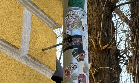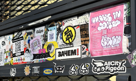 Стикеры — особый «жанр городского семиотического пространства» [6]. Их размер обычно достаточно мал, из-за чего сообщение выражается предельно лаконичным и прямолинейным способом. Вдобавок, стикеры — тиражный продукт, сравнительно дешевый в производстве. Это позволяет не просто передавать сообщение в пространство, но и делать это быстро, незаметно и массово. Эта особенность стала удобной для групп, населяющих пространство города: уличных художников и энтузиастов, владельцев малого бизнеса, футбольных фанатов. С помощью стикеров эти группы обозначают свое присутствие в среде, борются за внимание, взаимодействуют и конфликтуют.