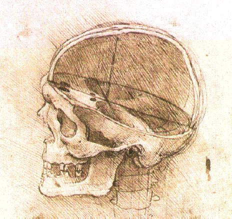Леонардо да Винчи, величайший художник-анатом, совершил революцию в изучении тела. Он первым стал изображать органы, например череп, в нескольких проекциях — анфас, в разрезе и профиль, — создав принципиально новый язык научной иллюстрации.