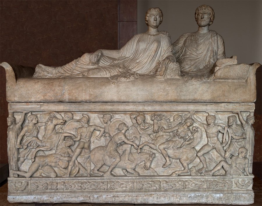 Неизвестный автор, «Смерть Пентесилеи» (рельеф саркофага супружеской пары со сценами амазономахии), ок. 180 г. н. э.