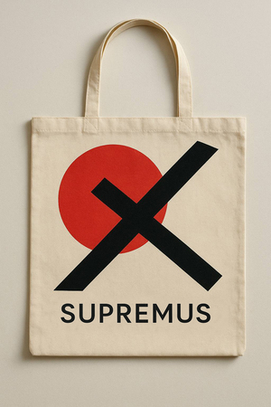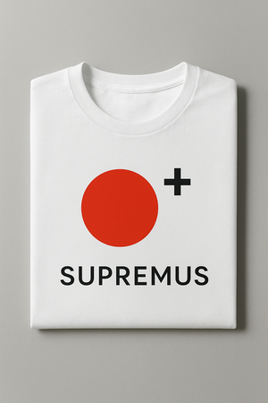 - ChatGPT -Deepseek помощь с написанием промтов Промт1 (футболка): Minimalist t-shirt design, flat lay photography. The t-shirt is premium white cotton, perfectly folded. On the chest is a clean, geometric print inspired by Ilya Chashnik: a composition of a bold red circle and a small black cross. Below the design, the text «SUPREMUS» is printed in a clean, modern, geometric sans-serif font. Soft natural lighting, sharp focus, mock-up style, on a light gray background.